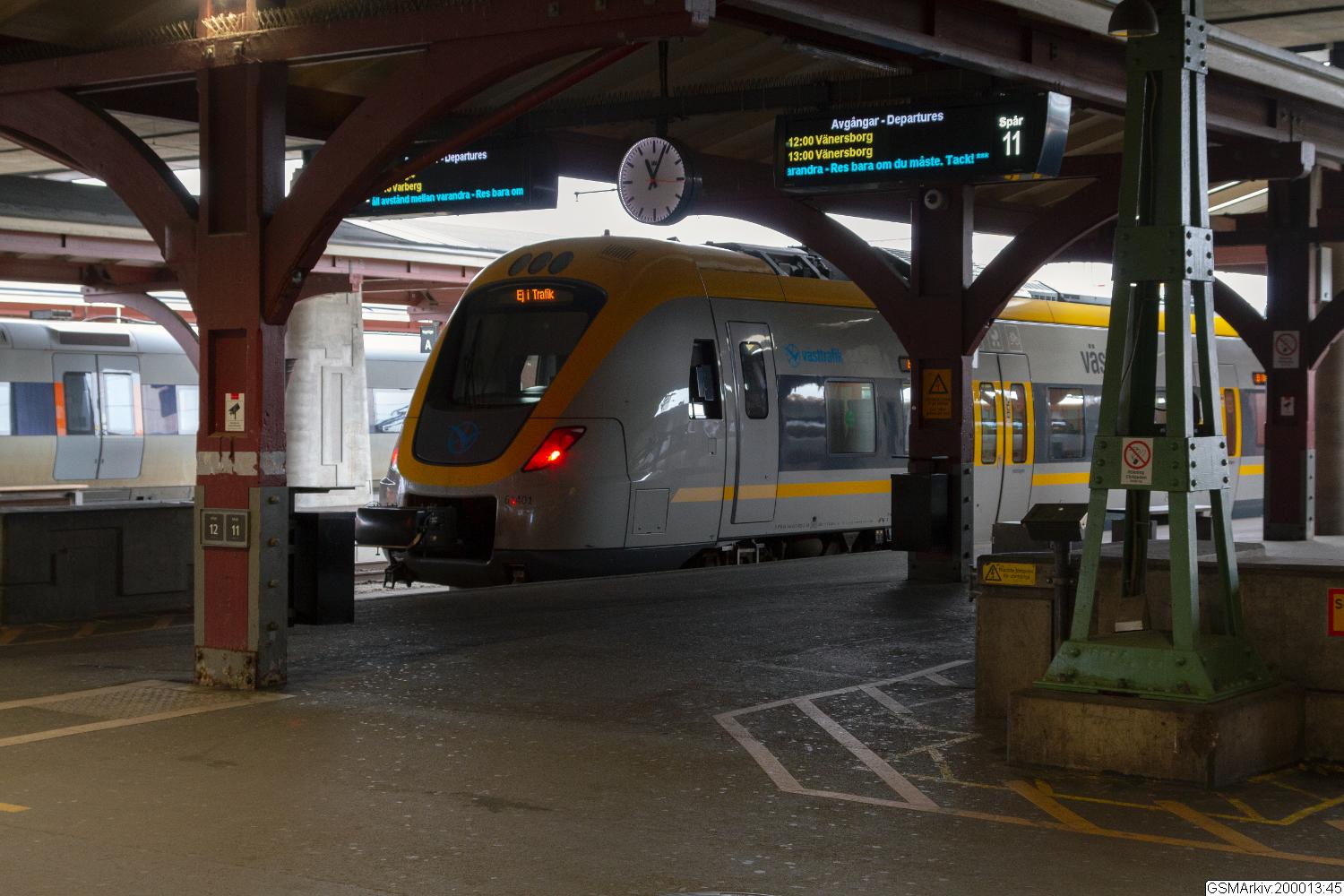 Göteborgs centralstation, digital informationsskylt som uppmanar till att begränsa resande