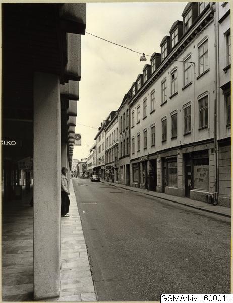 Sträckningsbild över Drottninggatan mot väster. Längst bort i bild skymtar Otterhällan