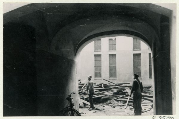 Kommendantshusets gård sedd genom porten.