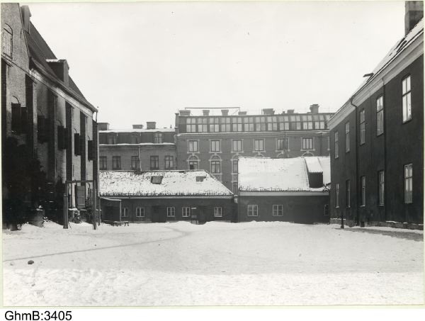 Gårdsinteriör. Fotot taget mot smedjan.