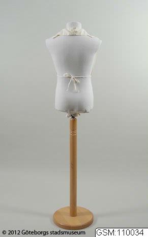 Skräddarsydd frack i svart ylle med slag i siden. Tillhörande enkelt konstruerat vitt skjortbröst i bomull eller linne.