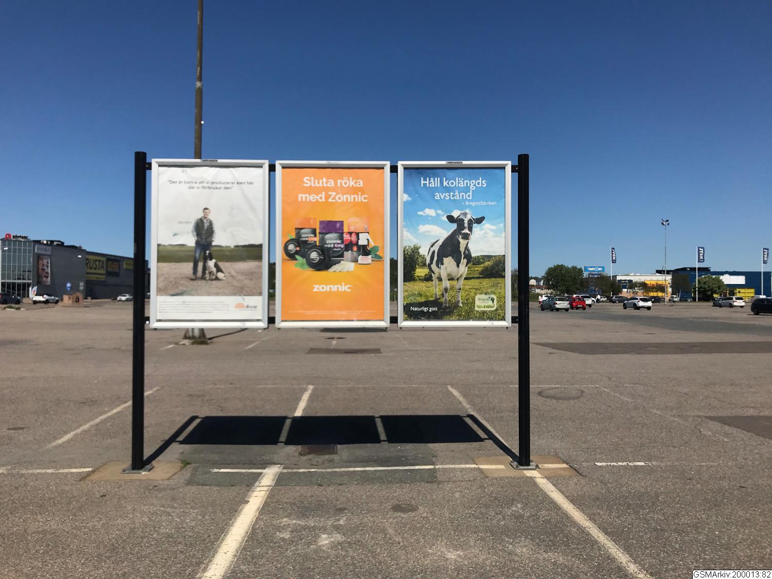 Backaplan, reklamskylt ”Håll kolängds avstånd”