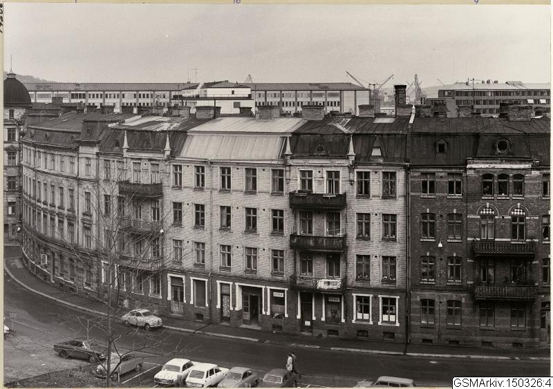 Sträckningsbild Fjärde Långgatan 21 -25, med flerfamiljhus byggda slutet 1800-talet, början 1900-talet