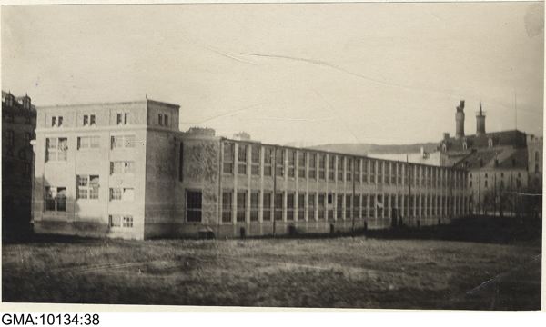 Almedals fabrikers nybyggda fabrik. Den nya spinneribyggnaden.