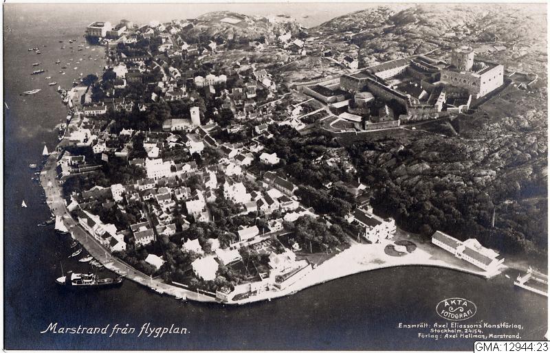 Svartvitt flygfoto över Marstrand