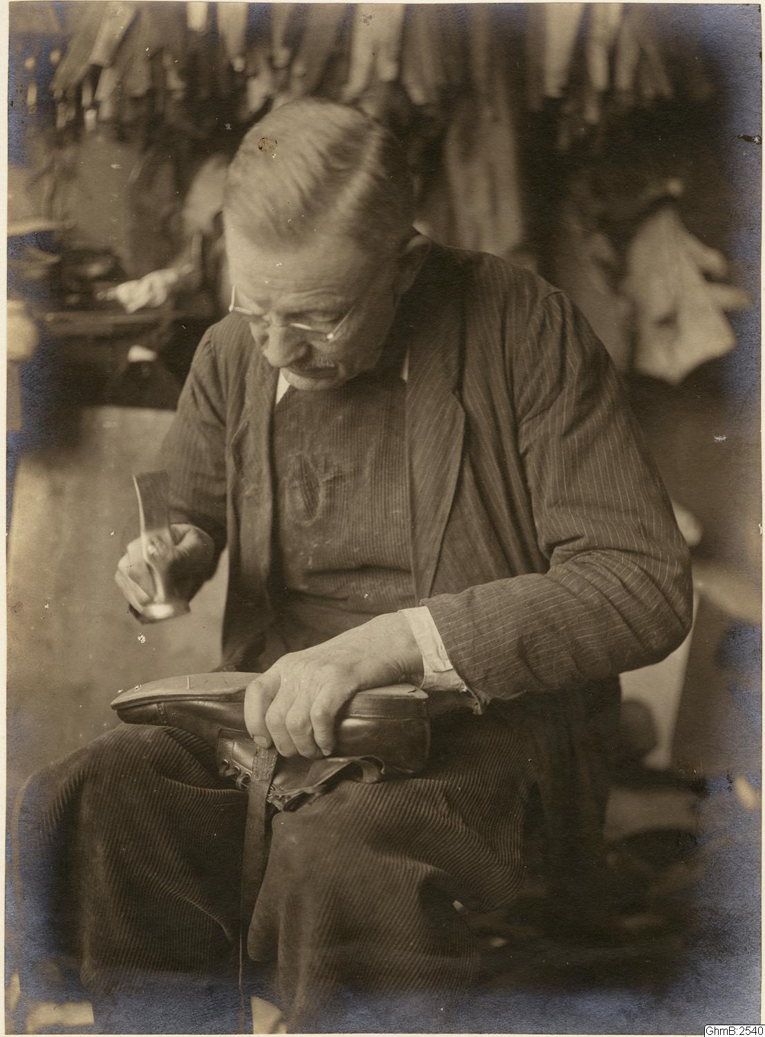 Okänd skomakare som pliggar en sko.