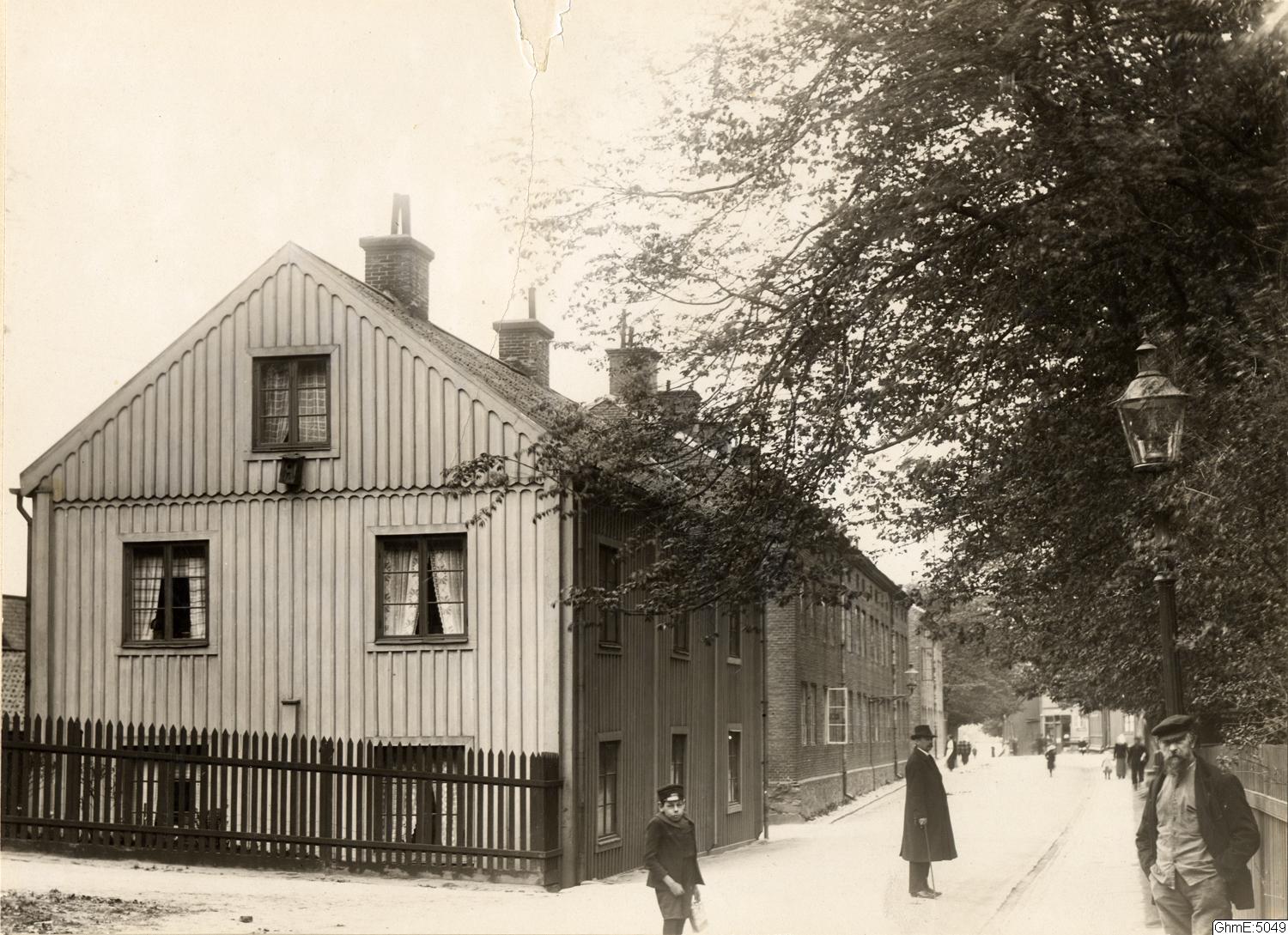 Beskrivning: Klippgatan,sträckning mot Karl Johansgatan. I Förgrunden Klippgatan 7, Majornas 2 rote nr 5. Wallenbergska Värdshuset även kallat Klippans Värdshus och Wärdshuset Lilla Klippan.