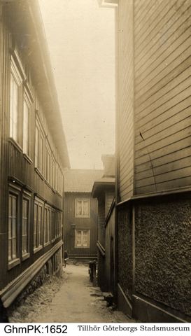 flefamiljshus på Hästskogatan, Majornas 6:e rote, mot Paradisgatan.