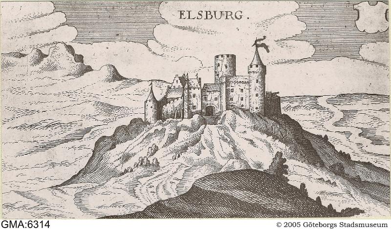 kopparstick: "Elsburg" (= Gamla Älvsborg). Illustration i "Inventarii Suecia /Ander Teil/ von Aufang der Regierung des durchläuchtigsten und grossmächtigsten Fürsten und Herrn Gustavii Adolphi, der Schweden, Goten und Wenden König."