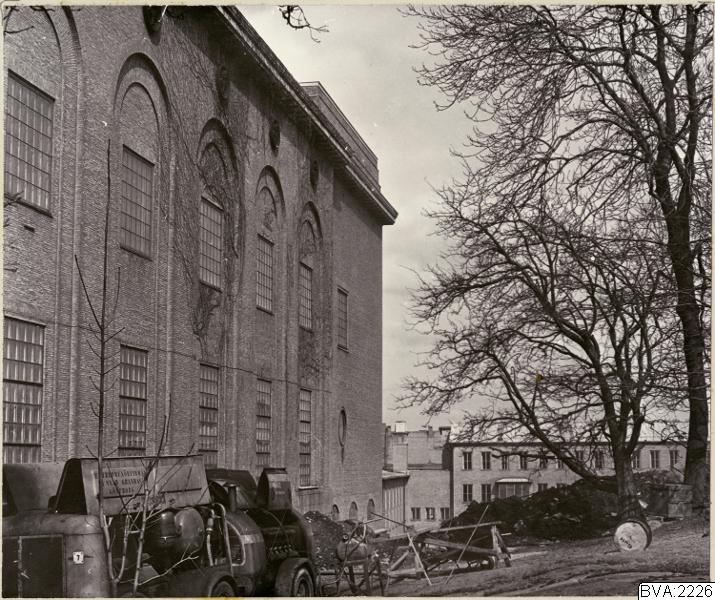 Svartvitt foto, som visar baksidan av konstmuseet inför tillbyggnaden av Falkhallen