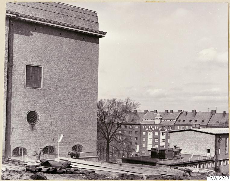 Svartvitt foto, som visar baksidan av konstmuseet inför tillbyggnaden av Falkhallen