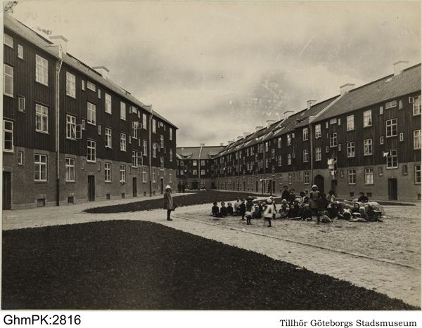 Gårdsinteriör från SKF:s arbetarebostäder, sedd mot väster.