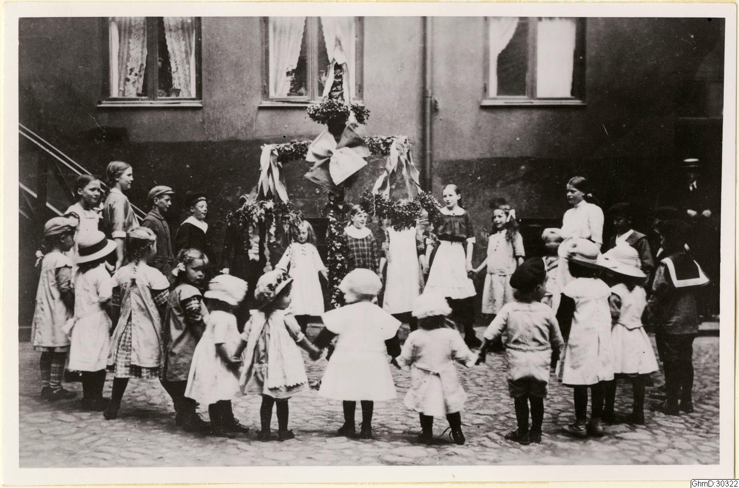 Dans kring midsommarstång på gården till på Hantverkaregatan 5