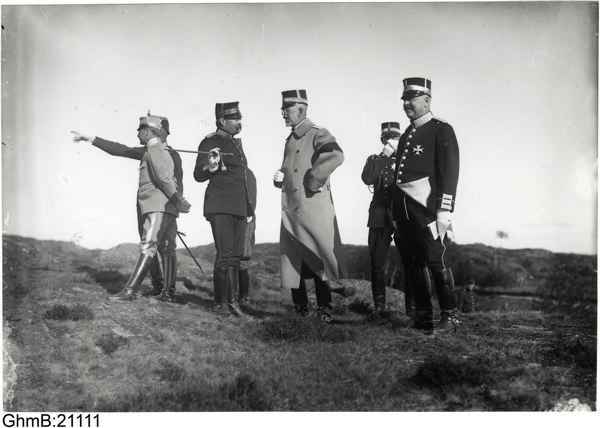 Fotografi från kung Gustaf V:s besök på Göta Artilleriregemente på Kviberg 2/10 1914.