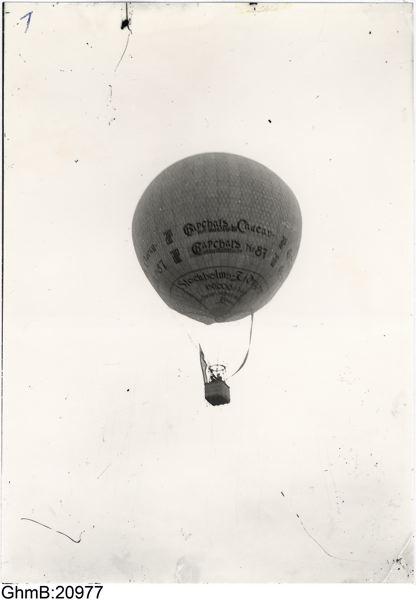 Händelser 1890-talet. Ballongflygning, troligen från Idrottsplatsen (Gamla Ullevis föregångare).