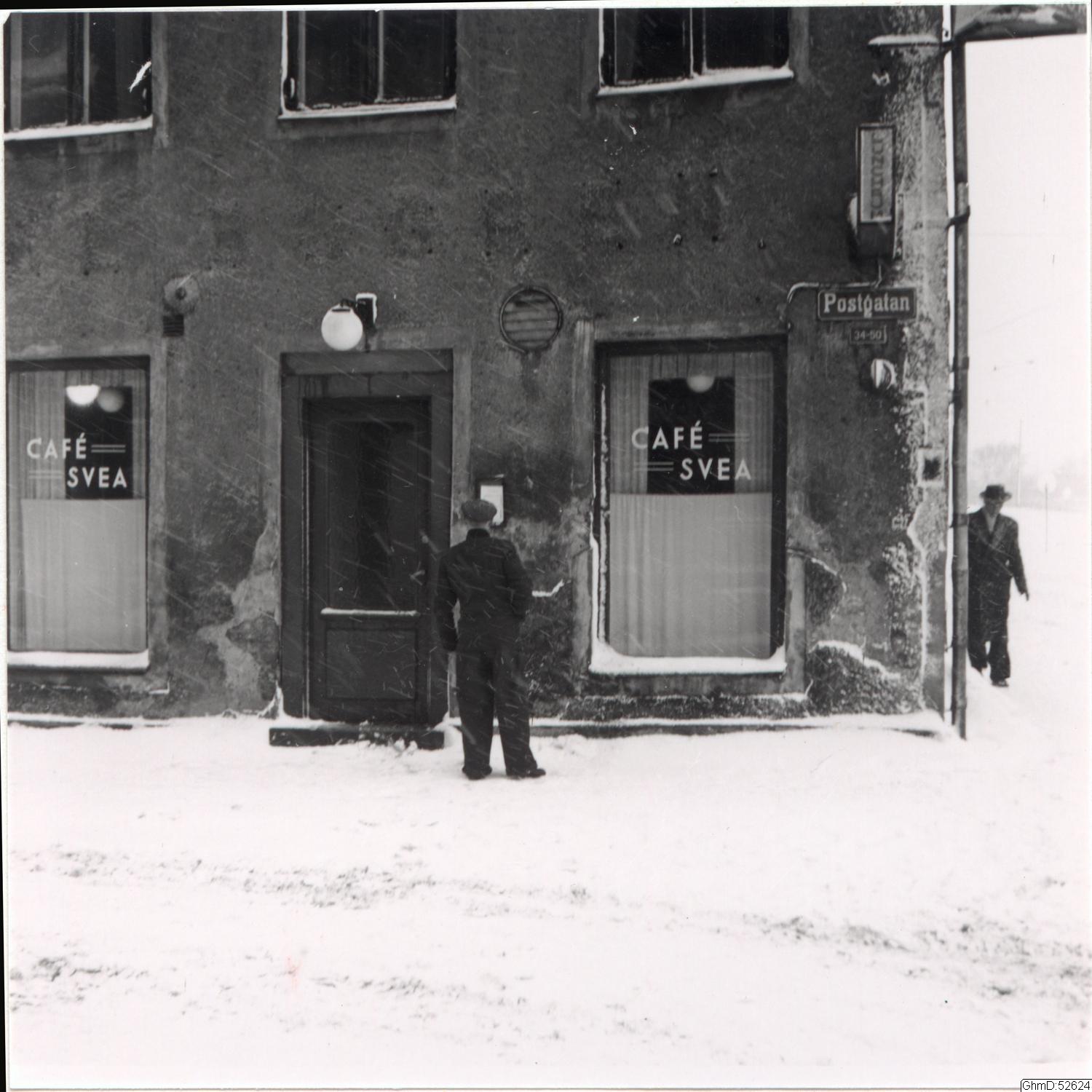 Vinterbild från Postgatan, utanför Café Svea.