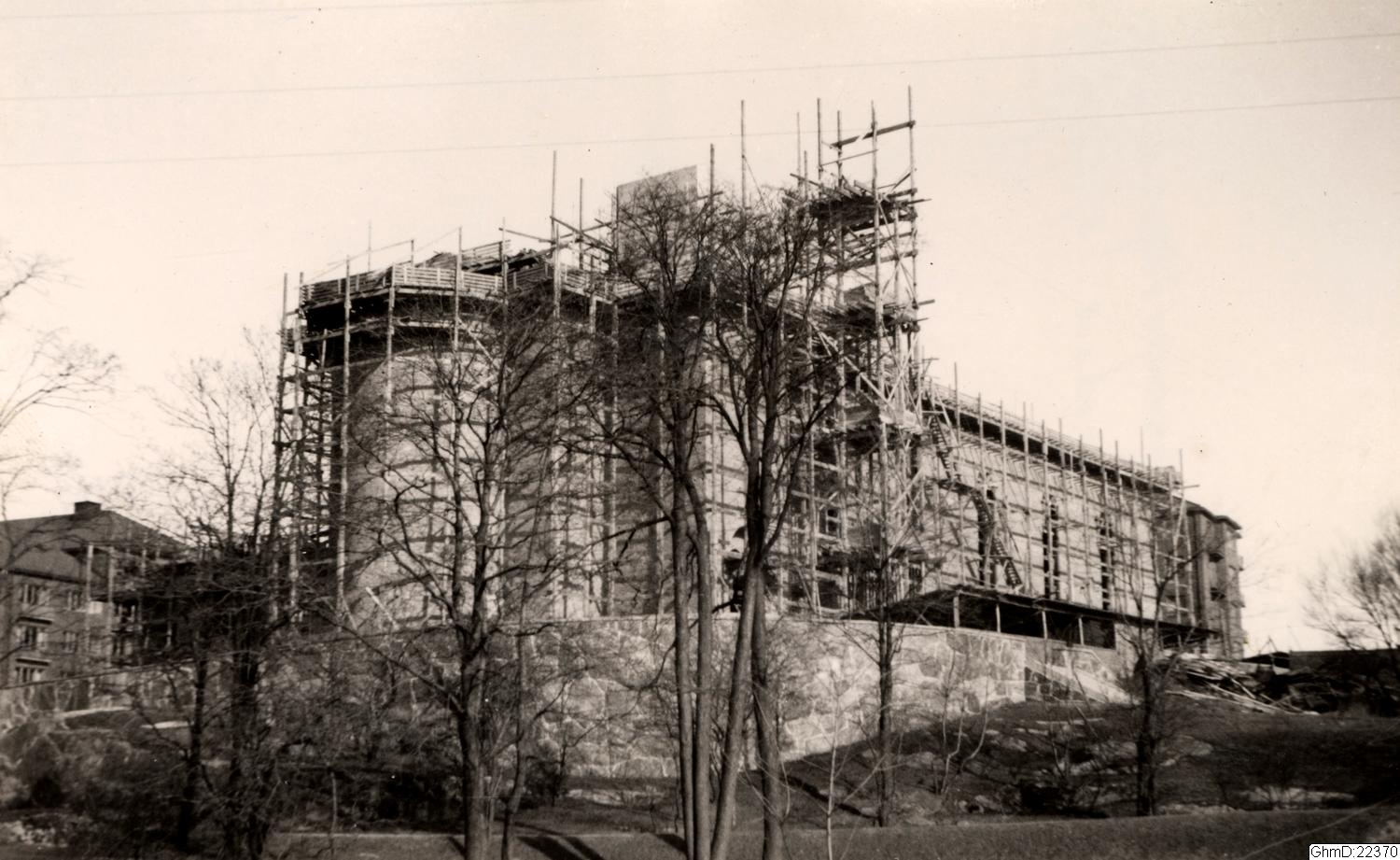 Johannebergskyrkan under uppbyggnad. Blick mot öster, från Gibraltargatan.
