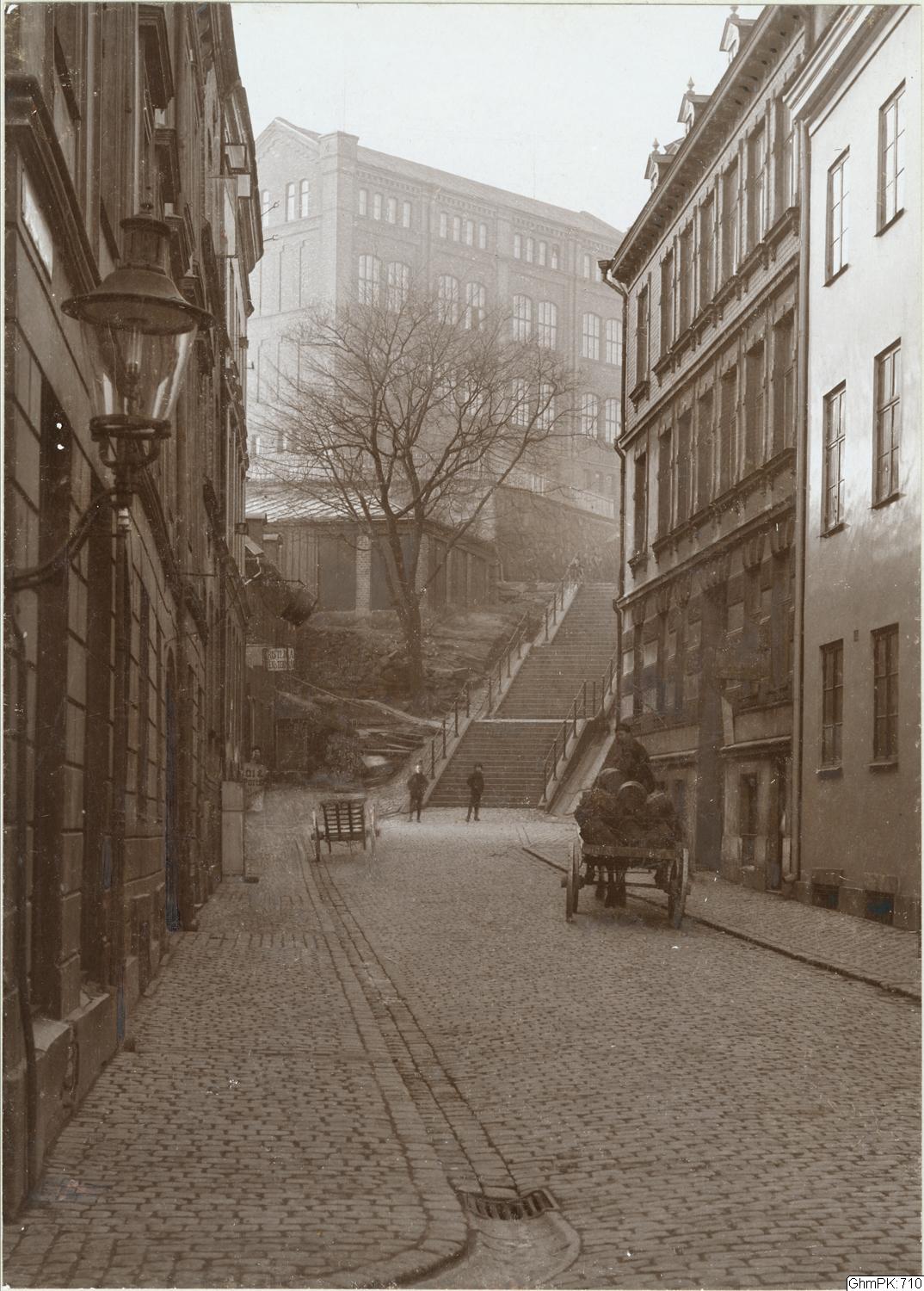 Spannmålsgatan, 1902 mot väster och Kvarnbergsskolan. Bilden tagen ihöjd med Torggatan.