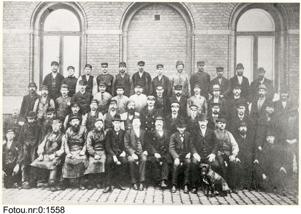 Verkstadspersonal och kuskar vid Byggnadskontoret.