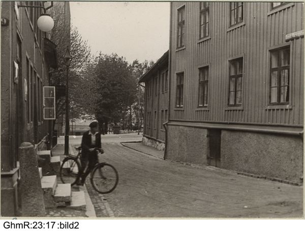 Beskrivning: Delawaregatan, f.d. del av Gamla Varvsgatan sedd från Almänna Vägen.