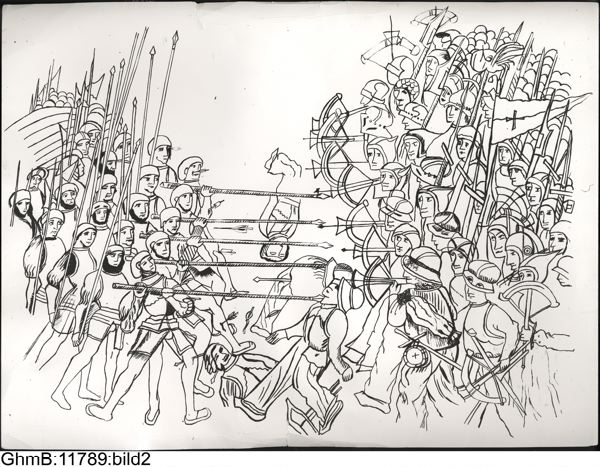 Belägringen 1502. Teckning av en tysk landsknekt, Paul Dolnstein. Foto efter noggranna avritningar i stor skala (G.M.)