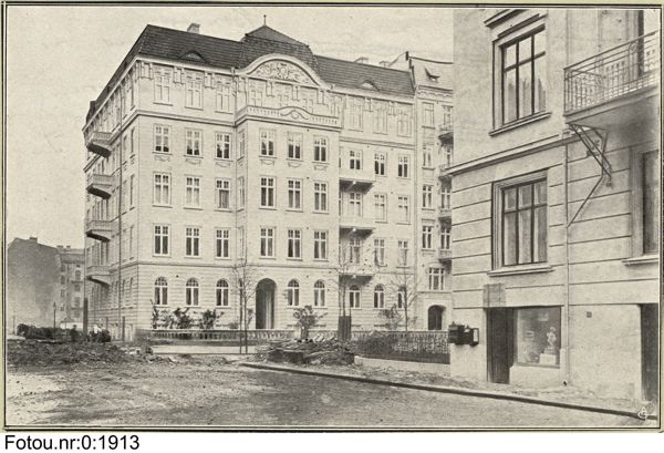 Å baks. av bilden, m. bläck: "Boningshus vid Berzeliigatan". (Arkitekt): "(Rob. Andersson 1904)."