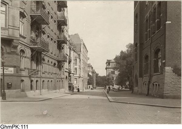 Chalmersgatan från söder vid Kristinelundsgatan, 1908.