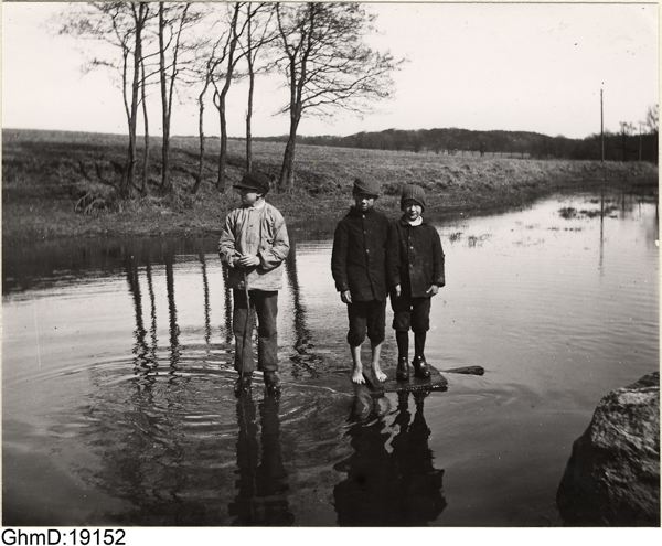 "Vadande pojkar ( =i Delsjöbäcken) vid Stora Torp."