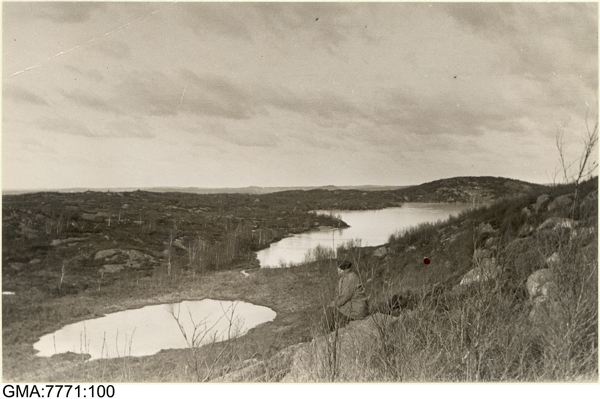 Västra Långvattnet med kalv på Stora Getryggen. Blick mot norr - sjöns södra sida i förgrunden.