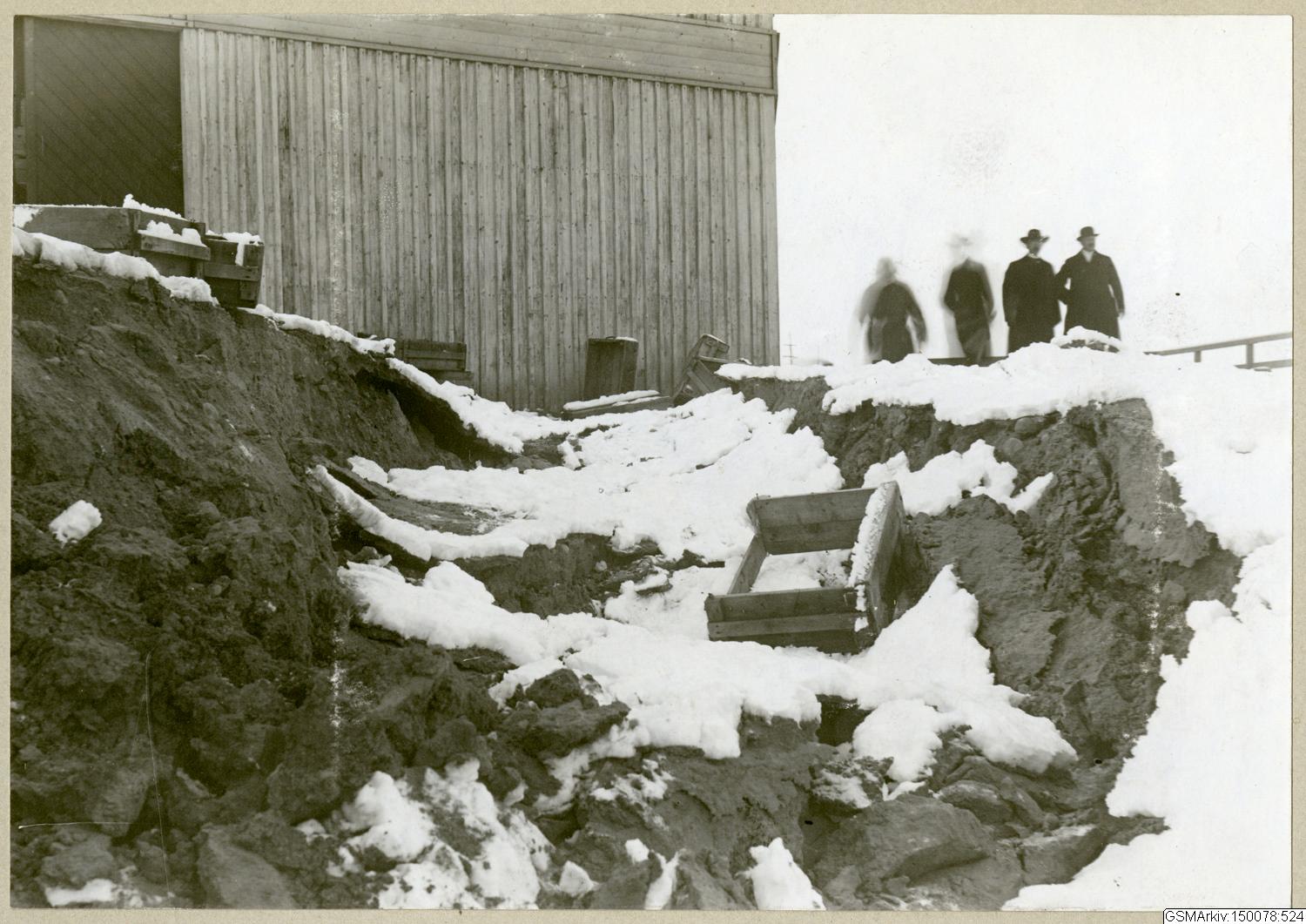 Beskrivning: Raset vid Fiskhamnen d. 30 Dec 1913.