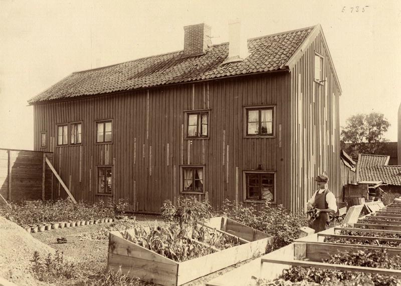 Gårdssidan på Karl Johansgatan 112 med handelsträdgård.