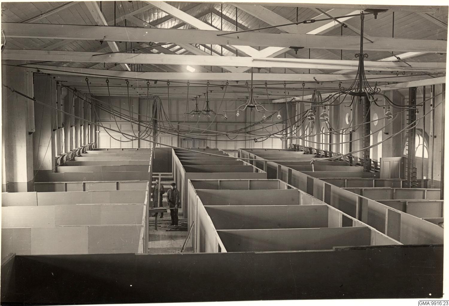 Nödbostäder i Exercishusets gymnastiksal, april 1917.