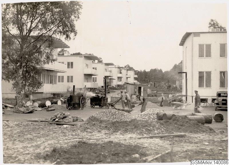 Svartvitt foto, byggandet av Vidkärrs barnhem, invigt 1935
