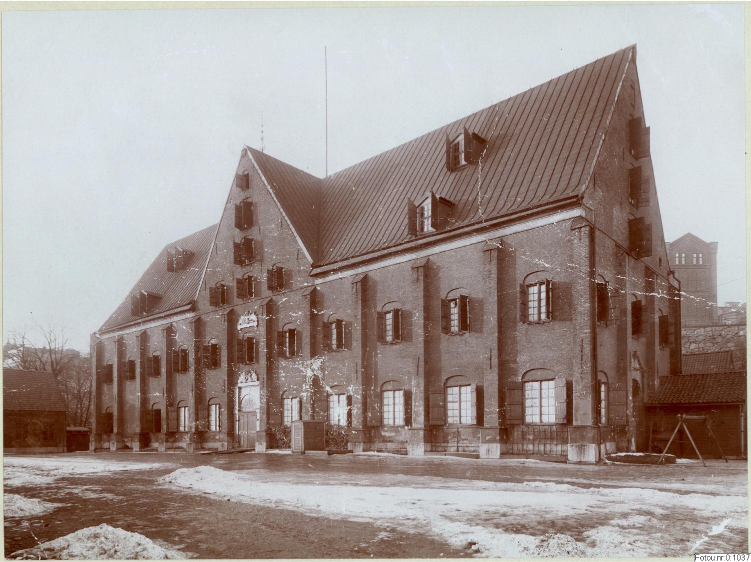 Kronhuset och Kronhusgården efter att garnisonen flyttat till Kviberg. Sista gudstjänsten hölls i Kronhusyrkan 1898-03-25.