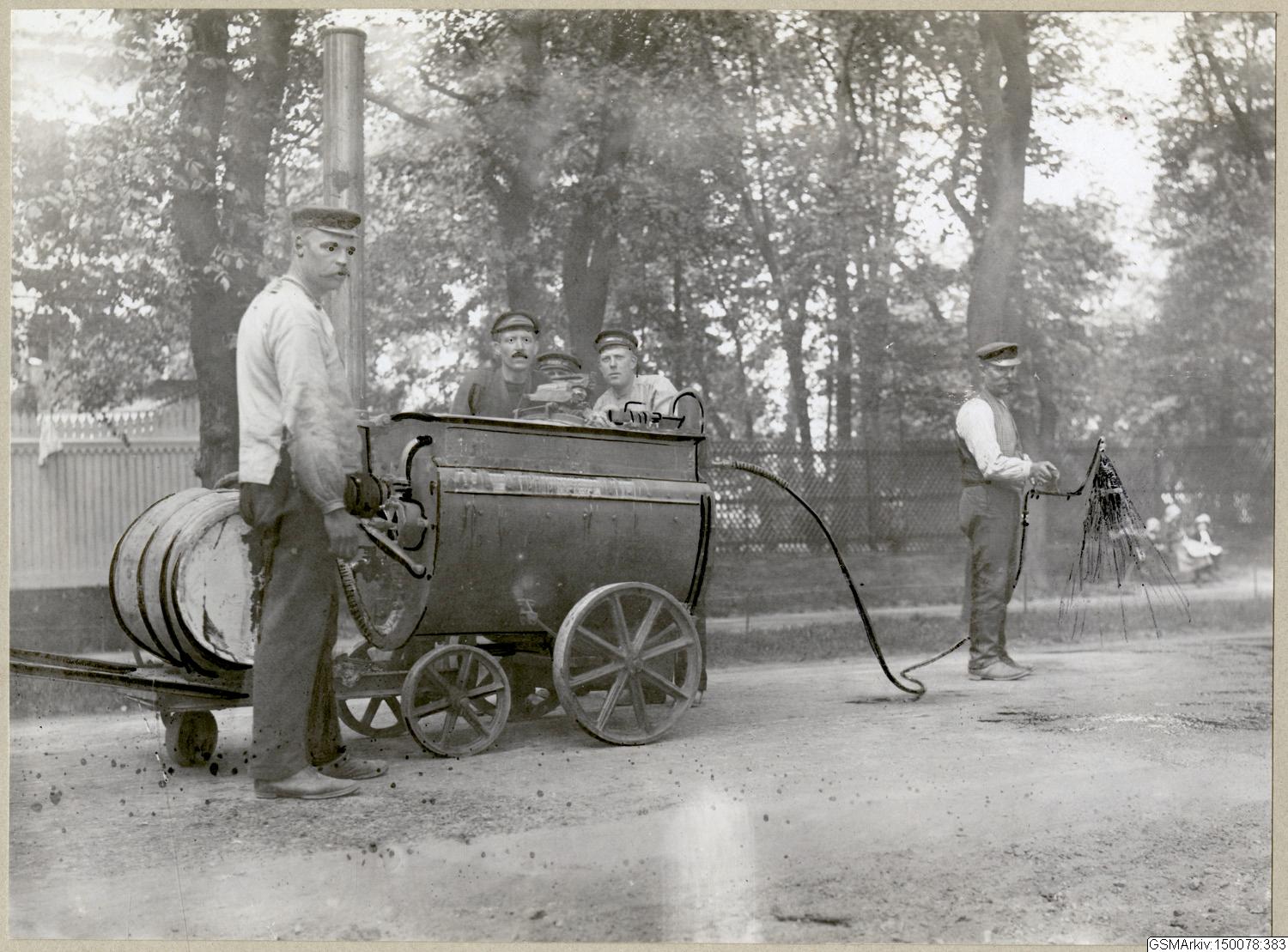 "Tjärsprutan" i verksamhet. foto t. d. 15 Maj 1913.