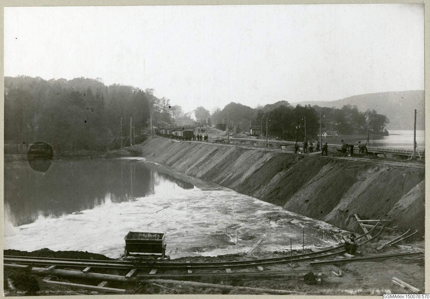 Arbetet med den nya banvallen vid rasplatsen d. 20 Okt 1913.