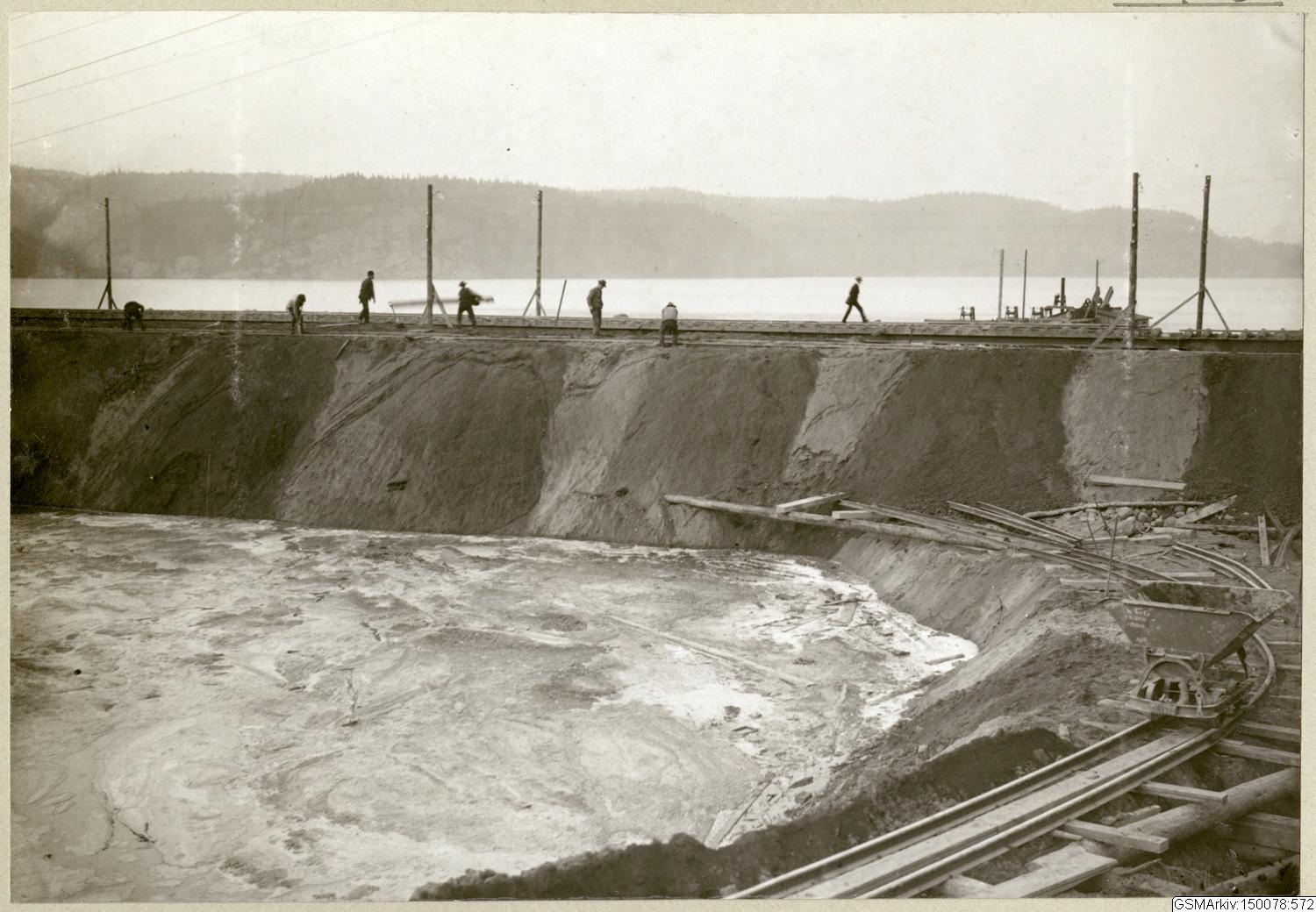 Arbetet med banvallen vid rasplatsen d. 20 Okt. 1913.