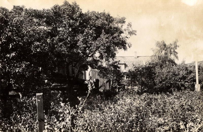 Karl Johansgatan 104, gårdssidan med parti av "Bäckska trädgården".