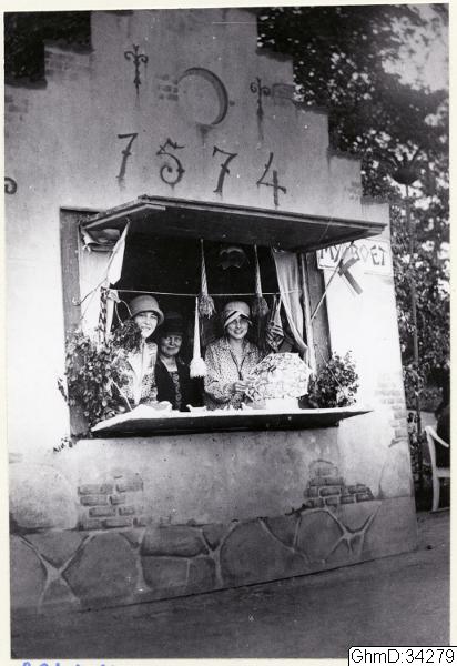 Sällskapet Myrornas stånd "Myrboet" kallat, på Barnens dag (?) år 1928. Foto efter foto år 1974 hos fru Ruth Stenberg.