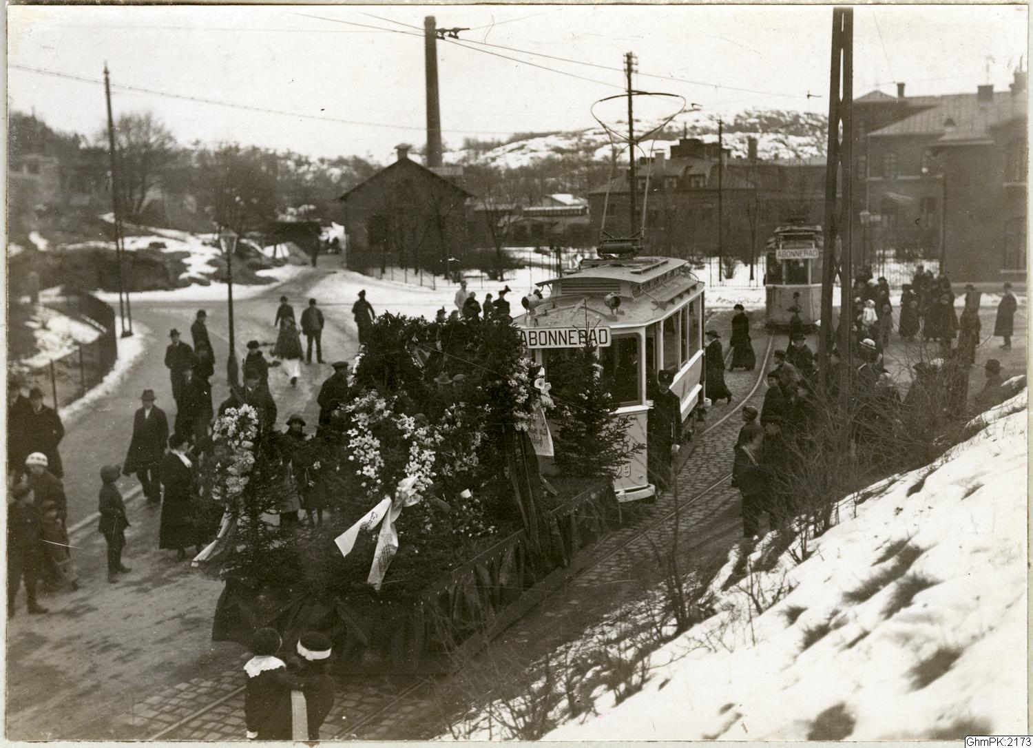 En spårvägstjänstemans begravning. Bilden tagen vind Sahlgrenska sjukhuset.