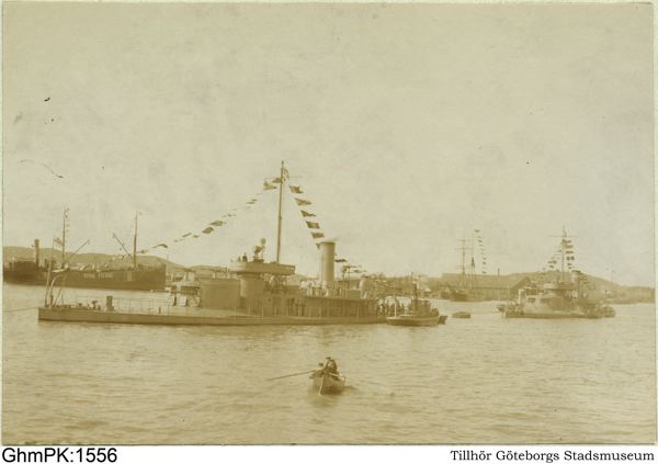 Göteborgs hamn, Flacket. Monitorerna "Thordön" och "Tirfing" vid sjösättningen av "Sverige" 1915.