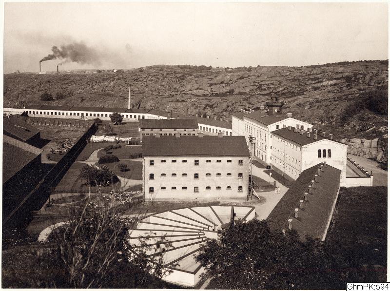 Centralfängelset vid Nya Varvet med tårbitsformade rastgårdar. Under åren 1870- 1907 användes Nya Varvet som fångvårdsanstalt.