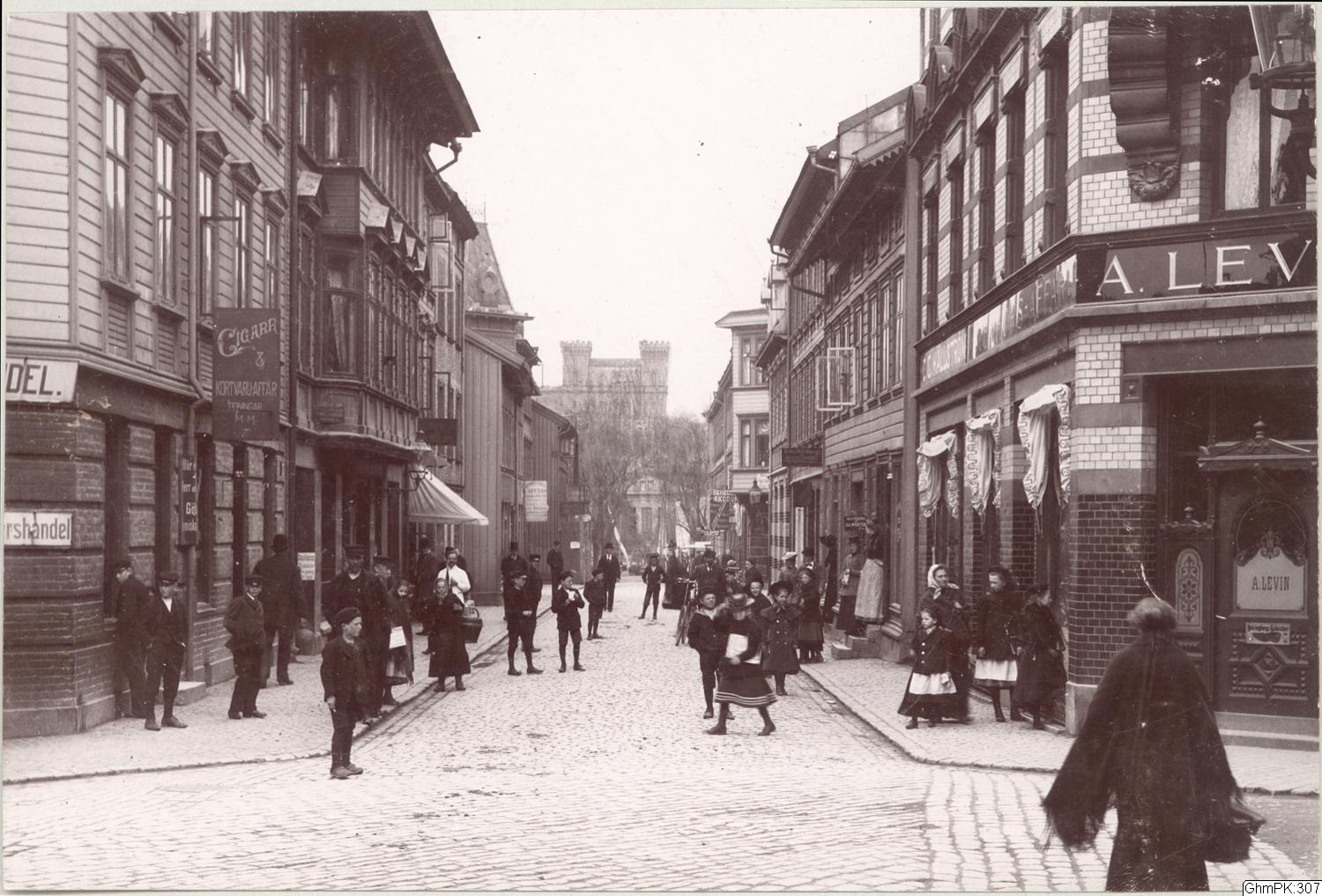 Husargatan mot norr från korsningen Haga Nygata. I fonden Arsenalen på Lilla Otterhällan.
