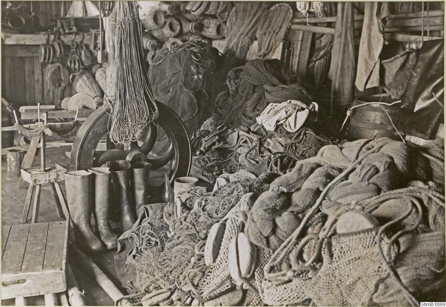 Interiör från sjöbod nummer 73 påSmögen. Sjöboden tillhörde, vid fotograferingen 1941, fiskaren Axel Andreasson, 46 år.