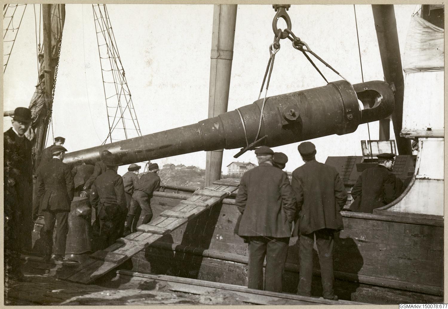 Lossning av en kanon, till Bofors d. 18 Mars 1914.
