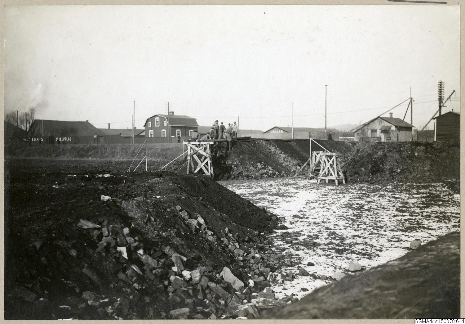Arbetet med jordvallen vid Kvillebäcksvägen d. 1 Mars 1914.