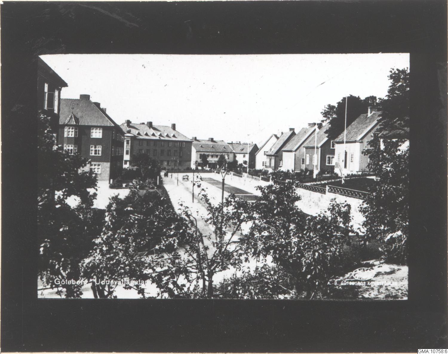 Sträckningsbild längs Uddevallagatan mot norr. Nummer 6 till vänster. I fonden Falkgatan.