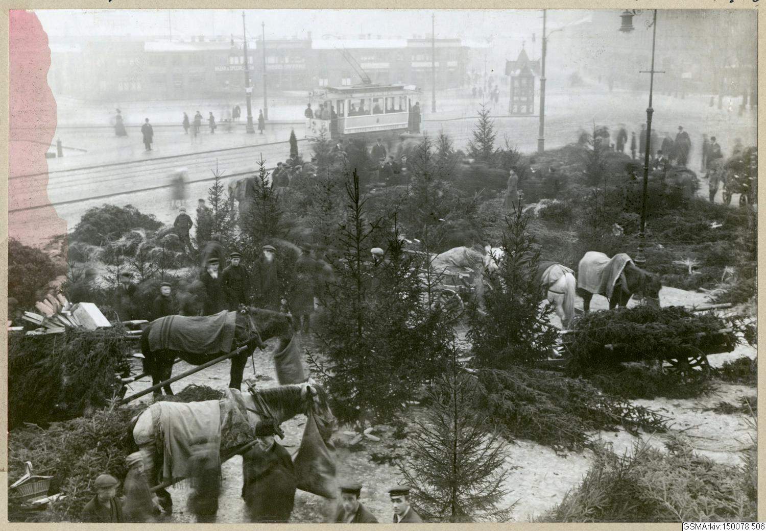 Julgransförsäljning på Järntorget d. 19 Dec 1913.