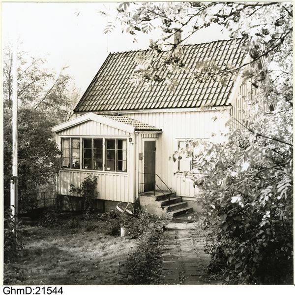 Hus vid Skeppsbyggaregatan 22, Biskopsgården. Foto 1964 av Ingmar Hasselgren.