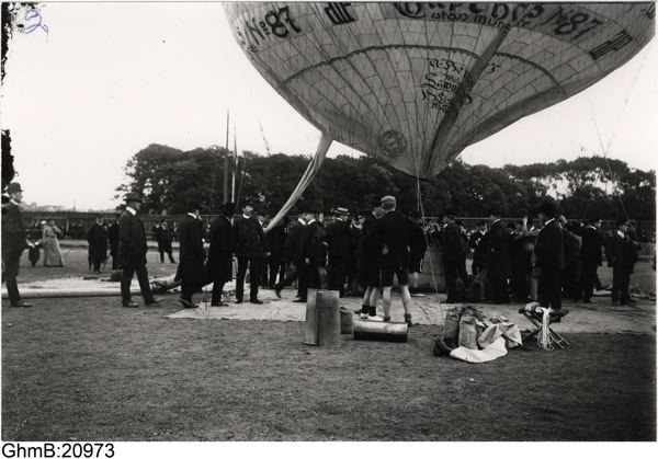 Händelser 1890-talet. Ballongflygning, troligen på Idrottsplatsen (Gamla Ullevis föregångare):